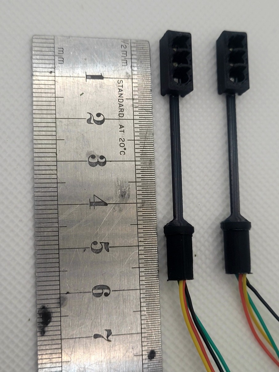 Traffic lights stand 48mm above the baseboard. A 6.5mm whole is drilled into the baseboard to allow the wires and base support stand to slot through.